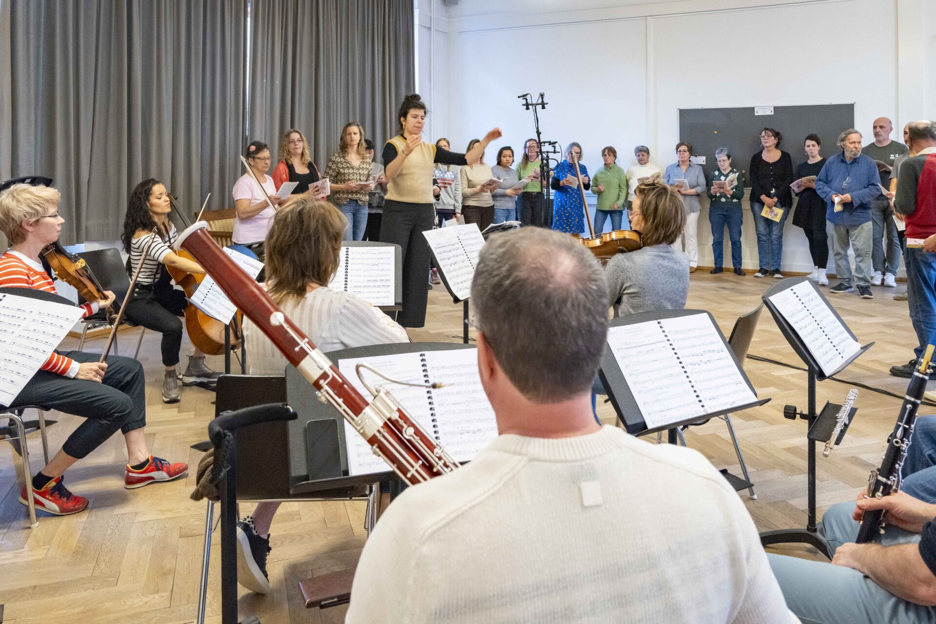 Der Surprise Strassenchor probt mit einem Ensemble des Synfonieorchesters Basel