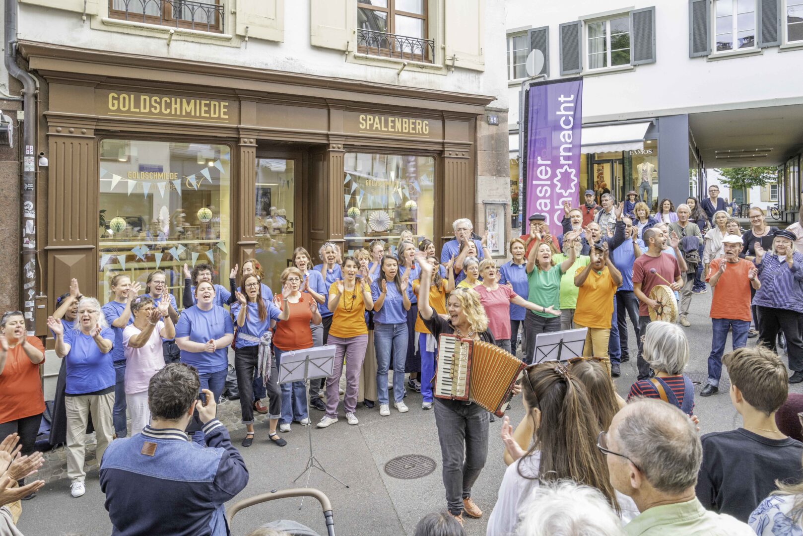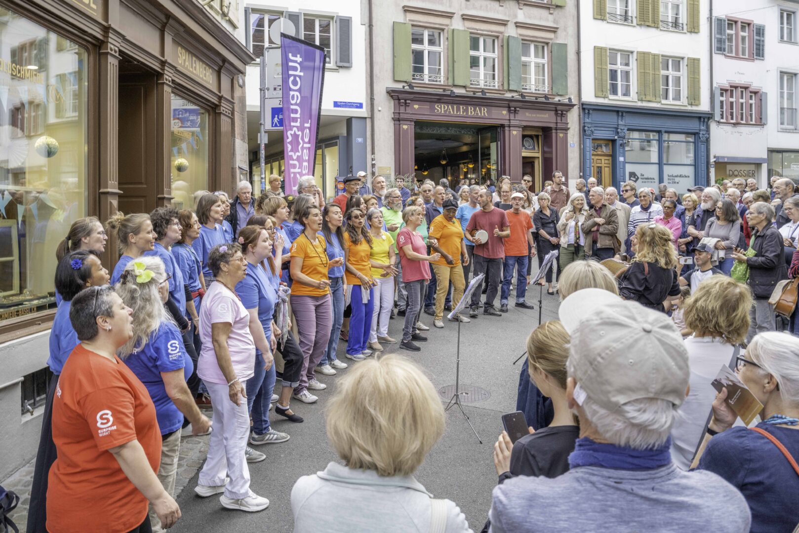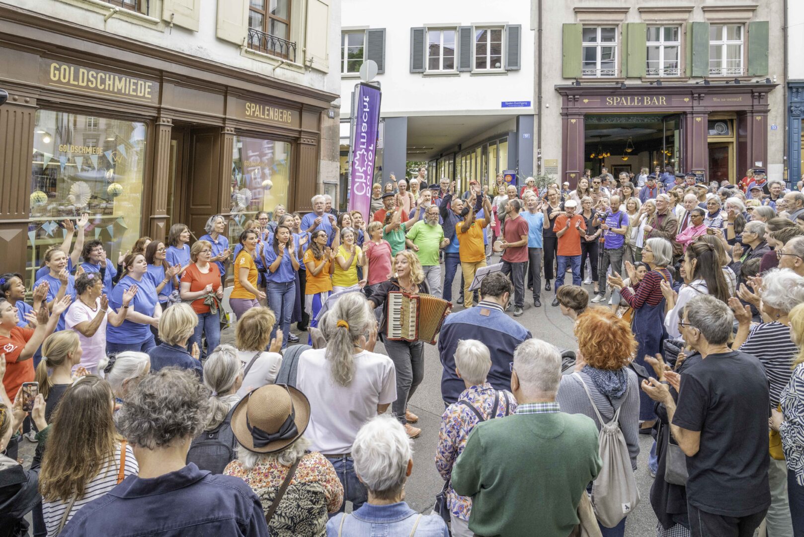 Mit 33 anderen Choren brachten wir Basel zum Klingen und machten die Vielfalt der Basler Chorszene hör- und sichtbar.