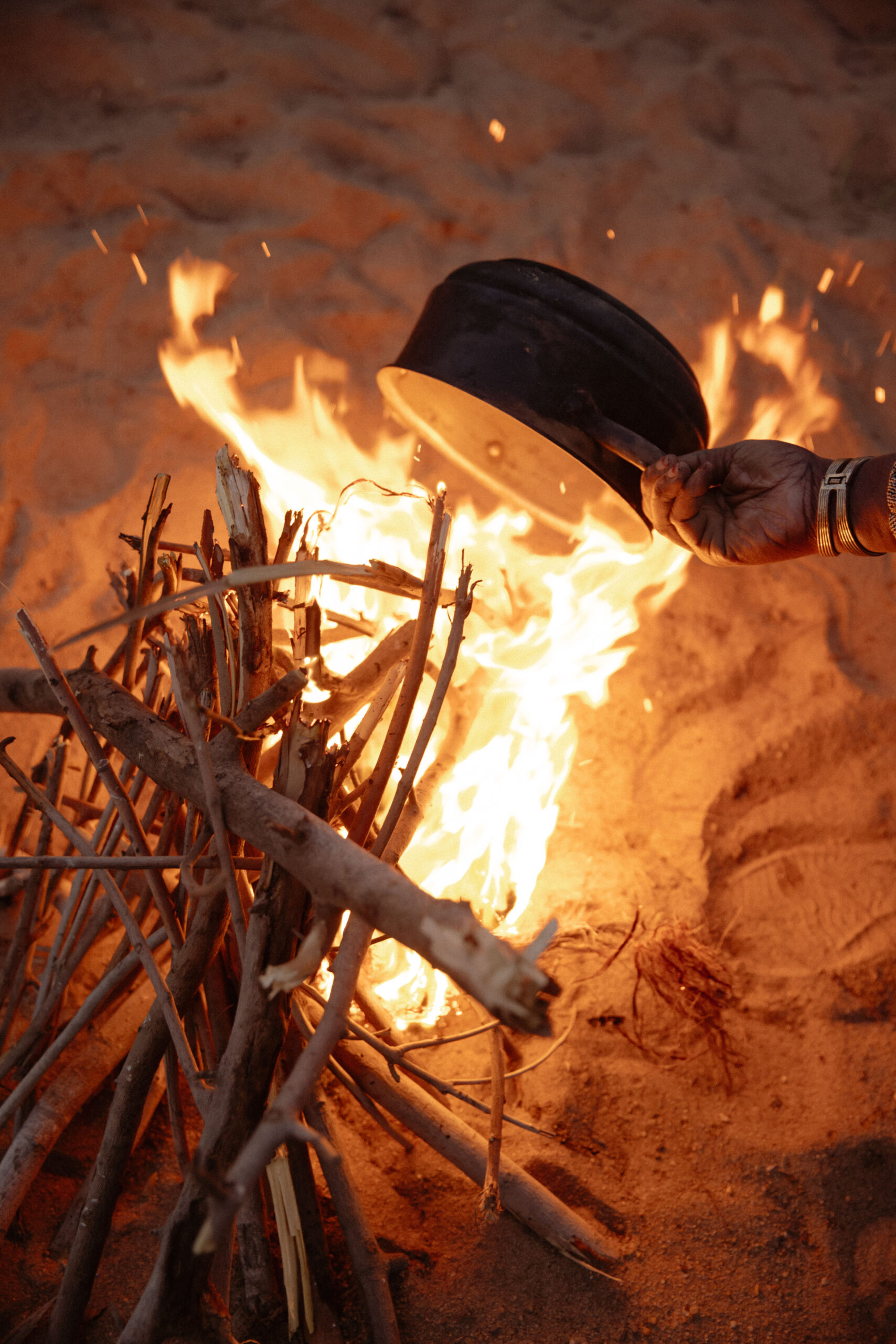 Ich schaffte es, dass alle zusammenblieben, schlichtete Streit und teilte das wenige Essen, das wir hatten. Gott sei Dank fand ich in der Wüste einen schmutzigen Topf, den ich mit Feuer und Sand reinigte. Die Schmuggler hatten uns nur mit Benzin verunreinigtes Wasser, ein wenig Kaffee und Hirsemehl dagelassen.