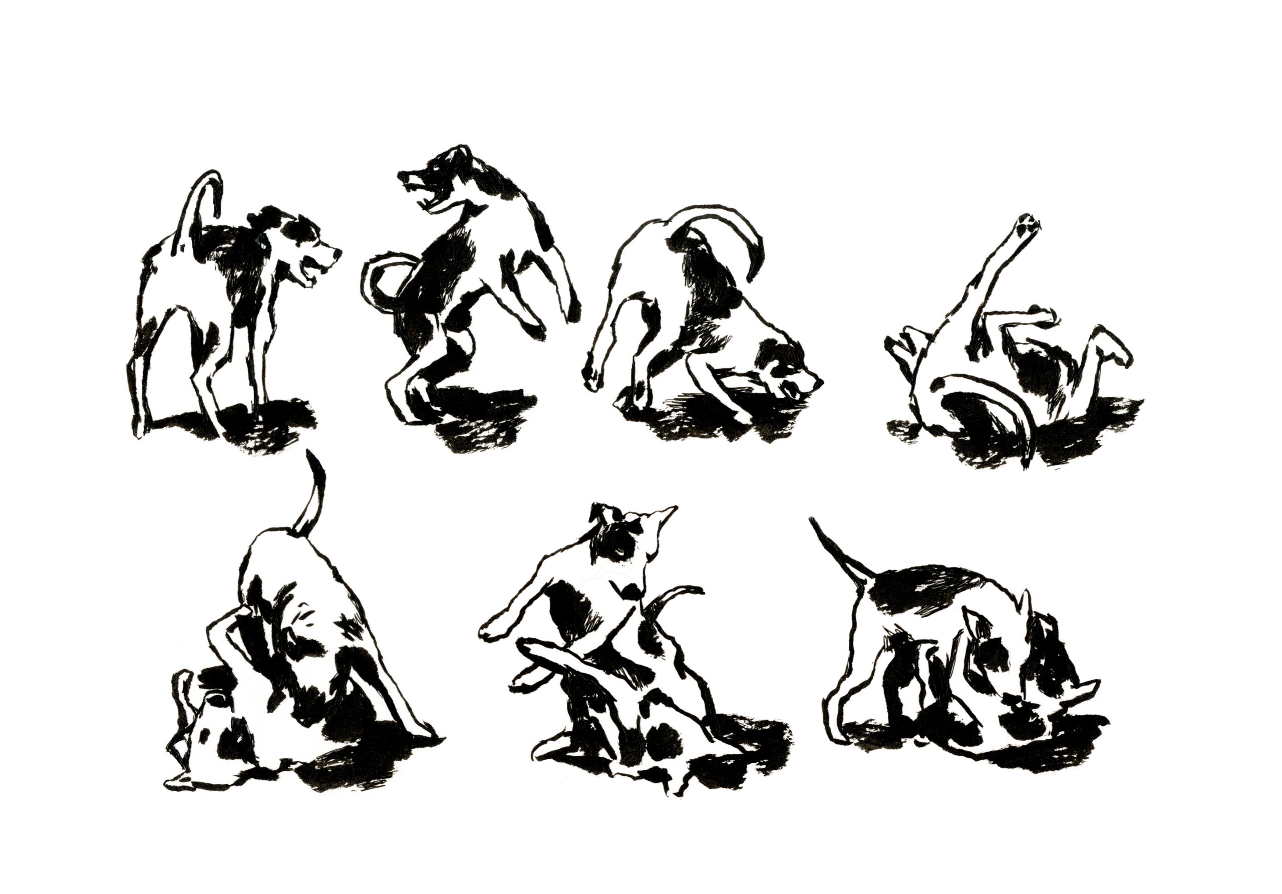 Als Hundehalterin trifft man, sobald draussen unterwegs, nicht selten auf andere Hund-Mensch-Gespanne. Zunächst begegnen sich in der Regel die Tiere. Als meine Hündin jung war, lief das so ab: Die beiden beschnuppern sich, dann fordert eine den anderen japsend und wedelnd zum Spiel auf –und schon sind sie nicht mehr zu halten. Je nach Lust und Kondition verfolgen sie einander abwechselnd bis zu einer halben Stunde, in hakenschlagendem Renngalopp. Irgendwann sind sie müde, purzeln übereinander, keilen sich im Liegen, mit offenen Mäulern, Zähne schlagen aufeinander. Schliesslich hecheln beide nur noch vor sich hin, den Kopf erhoben, mit heraushängender Zunge.